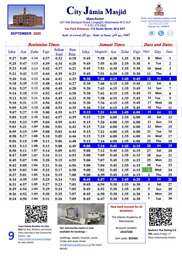 City Jami' Masjidcity jamia masjidislamic academy of manchestermanchesterPrayer timetable